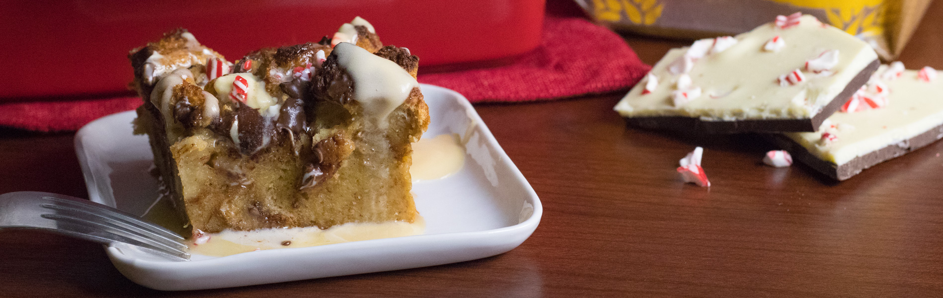 - Place peppermint bark in Ziploc bag. Break the peppermint bark into small pieces with a rolling pin and sprinkle over baked French toast.