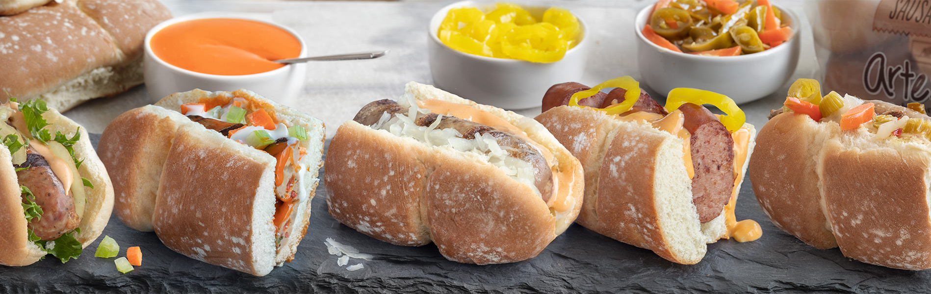 - Mix and match sausage halves, topping with desired condiments, to build the perfect, customized gourmet flight. Here are Artesano’s recommendations: