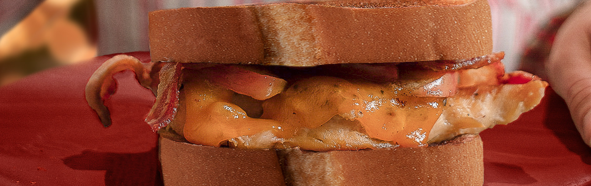 - Spread honey mustard on both slices of bread. Layer chicken, bacon and apples on 1 bread slice, and top with second bread slice. Enjoy!