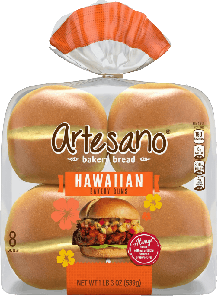 It’s the artisan style you love, now with a sweet taste of paradise. Soft, fluffy, and deliciously versatile, Artesano® Sweet Hawaiian Hamburger Buns bring a touch of tropical flavor to everything from classic burgers and BBQ pulled pork to crispy chicken sandwiches - so every bite feels like a mini getaway.