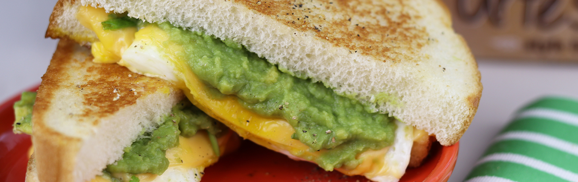 - Melt 1 tablespoon of butter in same skillet over medium-low heat. Layer 1 slice of bread with 1 slice of cheese, avocado and egg. Top with second slice of cheese. Spread remaining tablespoon of butter on second slice of bread and place butter side up atop sandwich.