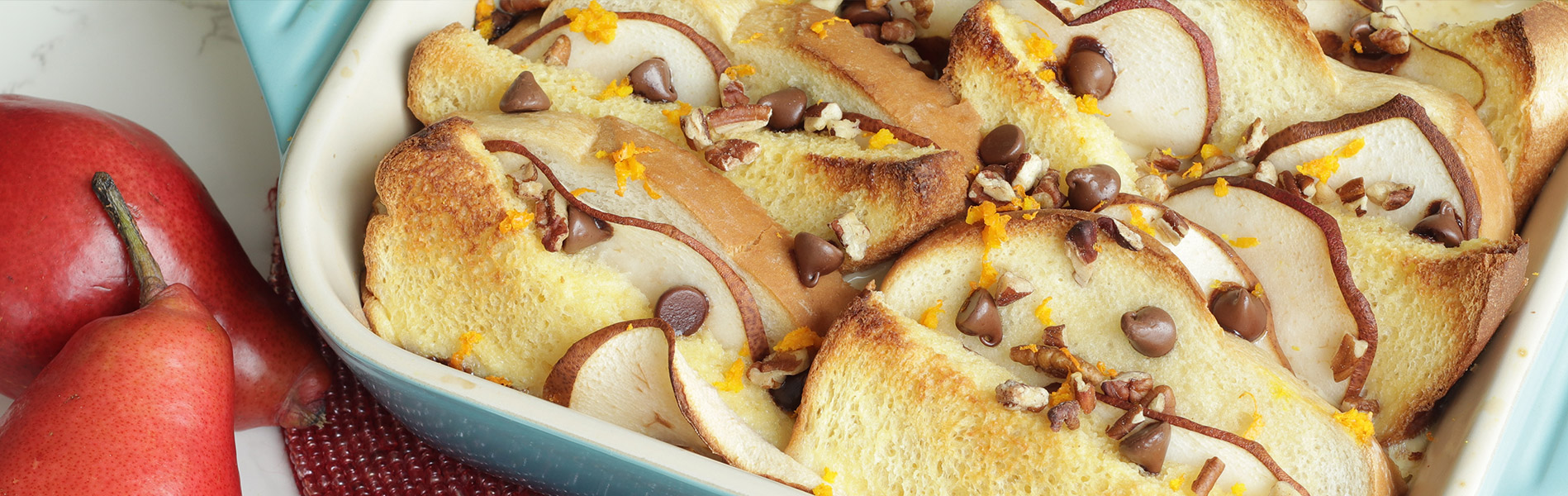 Pear and Chocolate Brioche Bread Pudding