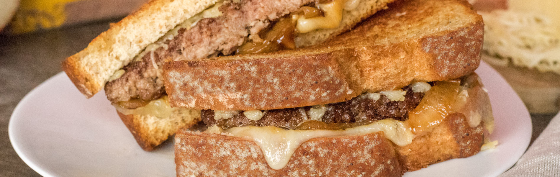 Caramelized Onion Grilled Cheese Burger by Katie Lee