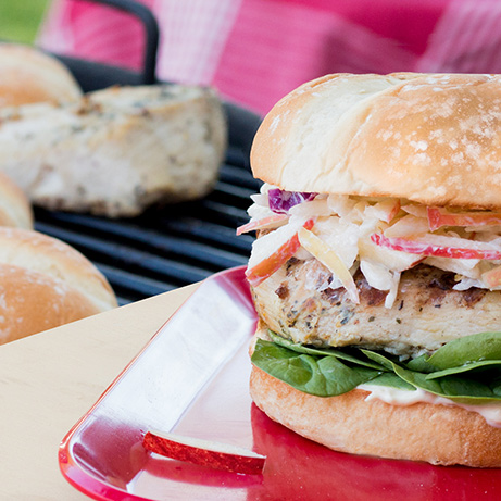 - Spread honey mustard on both slices of bread. Layer chicken, bacon and apples on 1 bread slice, and top with second bread slice. Enjoy!