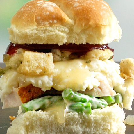 - Spread cranberry mustard on each roll bottom. Top each with 1/2 slice Gouda cheese and desired amounts of roast turkey and apple slices. Arrange 2 half slices of cooked bacon atop apple slices, then cap each sandwich with a roll lid and enjoy.