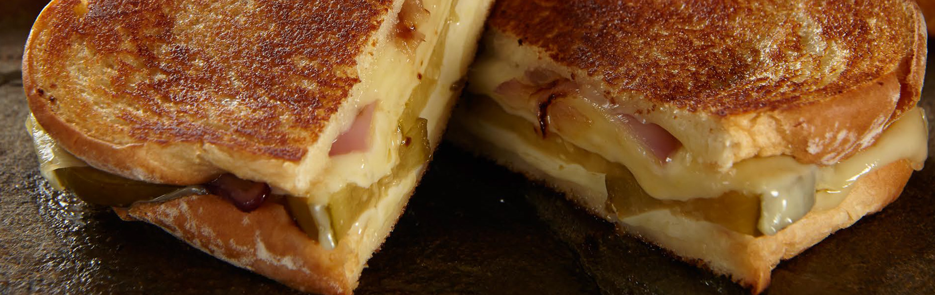 - Return skillet to stovetop and reduce heat to medium-low. Butter 1 side of each slice of bread and place 1 slice, butter side down, in the skillet. Spoon desired amount of aioli over the top of the slice in the skillet, followed by half of the Fontina cheese. Top with charred onions, pickles and remaining cheese. Drizzle with more aioli, sprinkle with pepper flakes and top with remaining bread slice, butter side up.